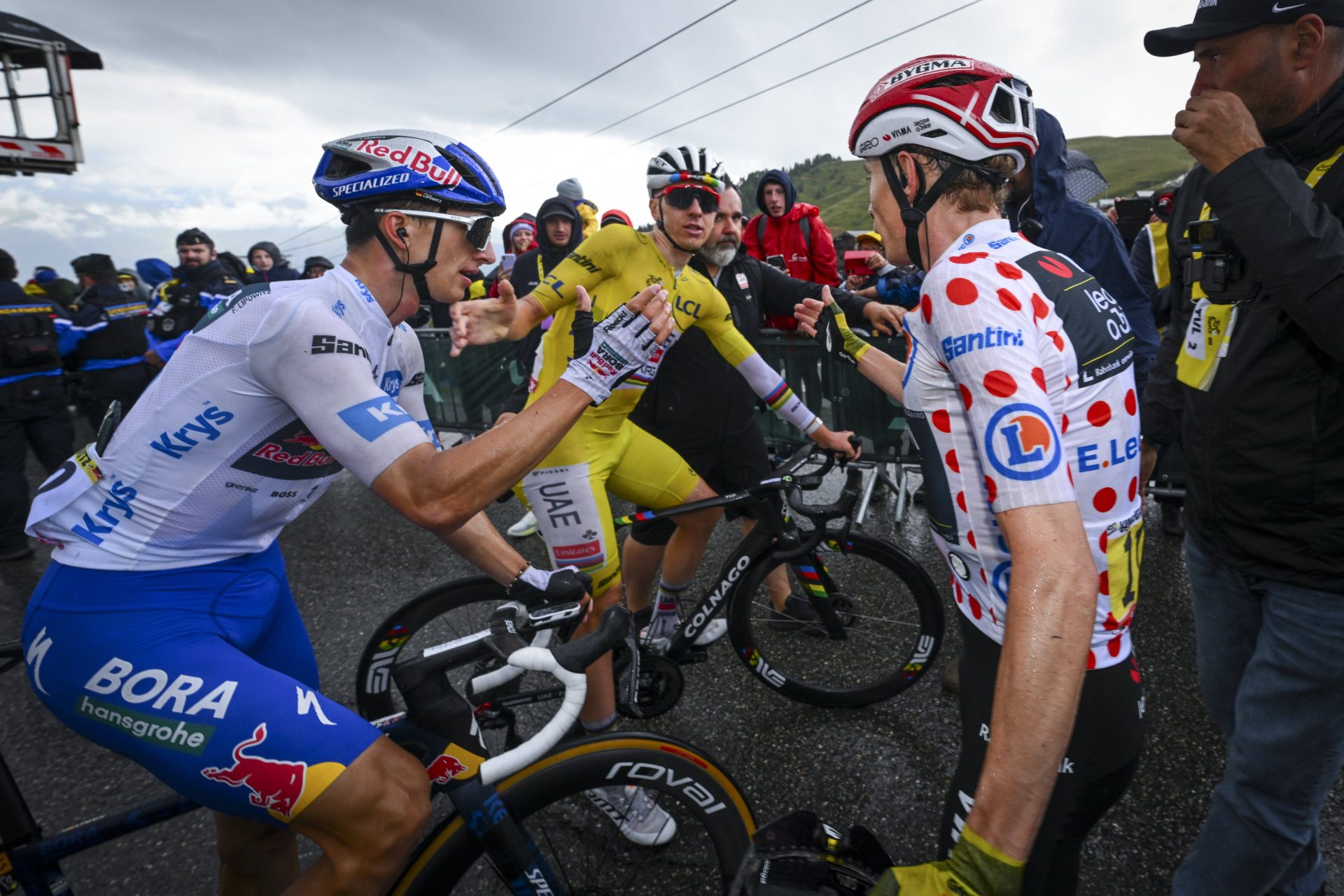 The climbing begins early. Just 12 km into the stage, the riders begin the Col de la Croix de la Serra, a 12.1-kilometre drag at 4.1% gradient that tops out before kilometre 25. After a descent into Saint-Claude, two more categorized climbs follow: Côte de Valin (5.7 km at 4.4%) and Côte de Chateau-de-Prés (4.4 km at 4.3%).